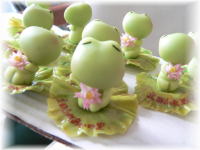 Aさんのカエルさんかたちはひとつひとつは小さいですが、数は多いです。同じポーズで作っているのにすべて違った表情になります。